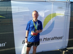 Within a couple of minutes of our Bentley blues crossing the finish line of the 10k race, back in Preston Park the first wave of runners crossed the start line of the Brighton Marathon. Gary Parker completed the 26.2 mile race in a new PB time of 3:49:05. Liz Jones ran within two minutes of her marathon PB, achieved just six weeks before, when she crossed the line in 5:34:44. Upon finishing the marathon, Liz collected her medal, making this the second consecutive year of the Jones family collecting all three available medals from the weekend (Mini-Mile, 10k and marathon).