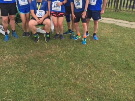 In the senior event, Tom Colsell ran his first 5 mile race, and finished with a time of 40:15 , which earned a place in the club championships. Anthea Colsell ran a PB of 41;56, which gained Anthea a club silver standard. Eric Shaw finished as 1st place in the male 70 age category with a time of 39:35, earning a nice trophy plus a club championships spot. Frank Gardiner ran a time of 40:30 for 1st place in the male 60 category. Wixy prepared well for the race with a session on the previous Friday and ran 41:14, Louise Upston ran 51:18, Belinda Palmer-Barnes ran 50:46, followed by John Bush in 53:53. Paul Davison ran brilliantly consistently in 33:21 to gain a silver standard and a club championship place, Sarah Fletcher ran 39:18 despite finding adapting to shorter runs difficult after her excellent marathon effort. Mark Ross ran 40:14, Neil Robins ran 46:05 with a strapped up knee for a club championship spot, and Paul Connell finished in 32:48.
