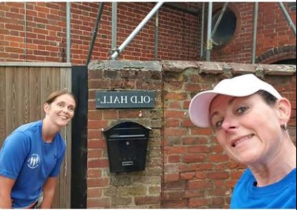 Lorna Sharp shared a photo from Mistley, smiling to the camera with Claire Fathers by the Hall Old, I mean Old Hall 😉.