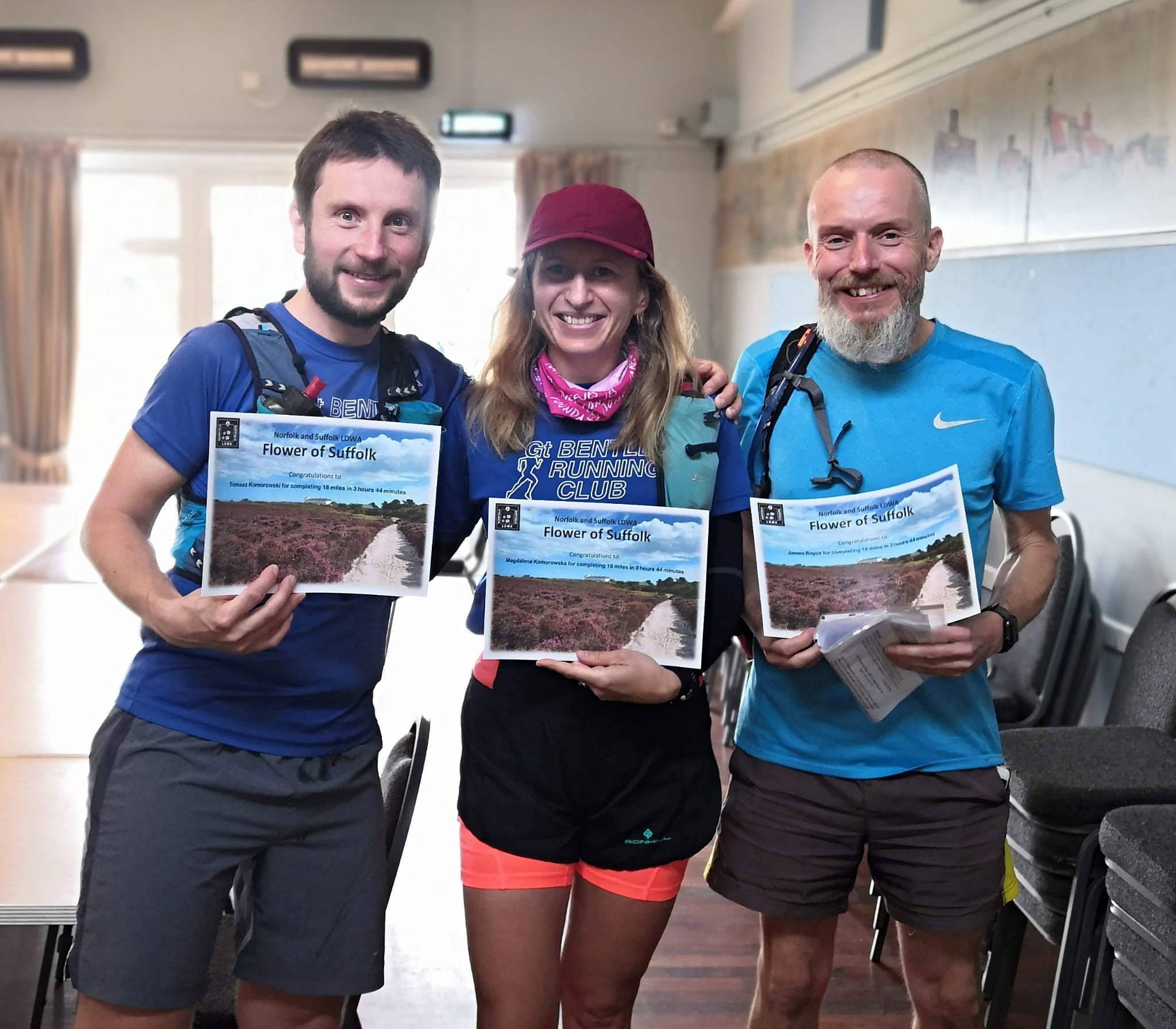 Mags, Tom and James Royce covered 18 miles at the well organised as always LDWA Norfolk & Suffolk “Flower of Suffolk” event. According to Tom they had perfect running conditions on a lovely route, lots of food and drinks at checkpoints and hot meal at the end. Overall a great day out.