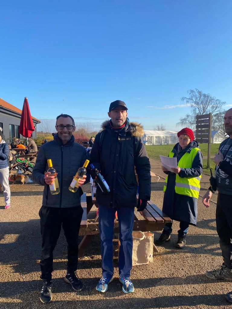 There was one other race that took place on Wednesday – it was a muddy 5.5 mile trail run in the dark. Phil and Vicky took on the Pitch Black event, hosted by Essex Trail Events. It started in Purleigh at the Roundbush Pub and finished there with chicken pasta bake! Phil finished in 1:00:24 and Vicky 1:01:41. Obviously he wanted to keep a bit of distance between them!