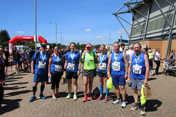 The Halstead Marathon runners, enjoying the sunshine before the race