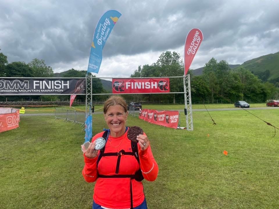 On Sunday we saw our very own “GI Debs!” (Debs Hollidge) take on the full marathon, alongside her friend and ex GBRC member Gemma Colling. This is an extremely tough and challenging event with approximately 6252 feet of ascent. The route is a fully way marked trail route looping around Grasmere and the neighbouring valleys with breathtaking views including Alcock Tarn, Rydall Hall, Loughrigg Tam, Loughrigg Summit, Rydal Caves, Great Langdale valley, Stickle Tarn and Easedale Tarn. What a fantastic achievement Debs, well done and all in aid of Red Squirrels which apparently she never saw apart from the grown man wearing a squirrel suit, or perhaps Debs was hallucinating as she crossed the finish line!!