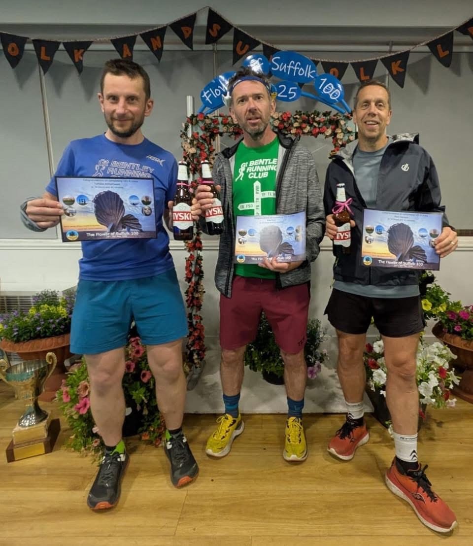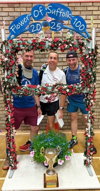 Paul Davison, Tomasz Komorowski, Rob Dyer and Fiona Gosling completed the Flower of Suffolk 100 last weekend. Beginning on Saturday and finishing 34 hours later with lots of ups and downs in mood, weather, terrain and energy levels but the plan was to finish and finish they did.