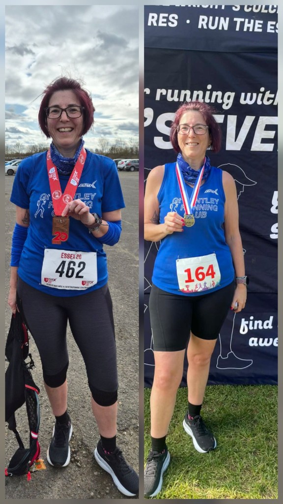At the longer end of endurance racing, Larina Marsh delivered a superb run at the Essex 20, knocking 10 minutes off her previous best and finishing 6th out of 149 in her age category. Lisa Briggs also reached a major milestone, completing her first ever 20‑mile distance at the Brett Lydd 20.