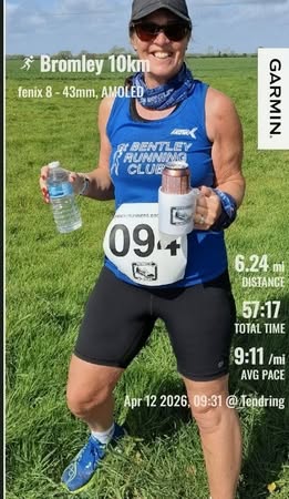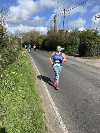 Back for another year at the Colne Engaine 5 miler (an event she’s run every single time it has been on) Rosie Youngs crossed the finish line in 49:07 to sneak under her 50-minute target. The medal, she reports, is plantable, meaning you can chuck it in some soil and wildflowers will bloom. Sustainability in action!