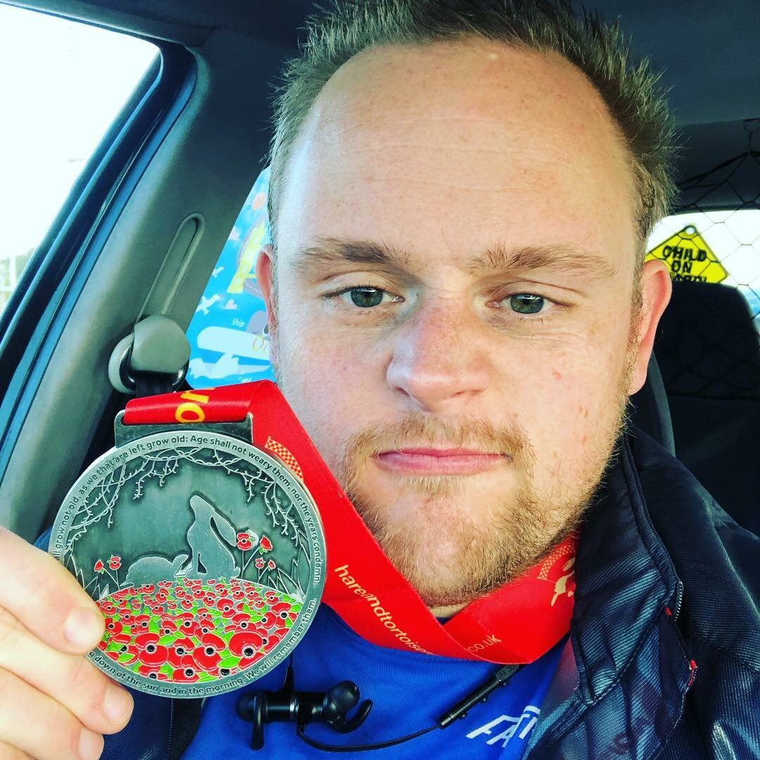Luke proudly showing his medal.